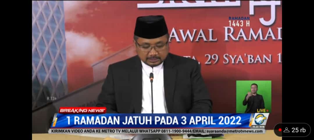 Hal ini berdasarkan hasil siding isbath yang dilaksanakan Jumat, 1 April 2022.
